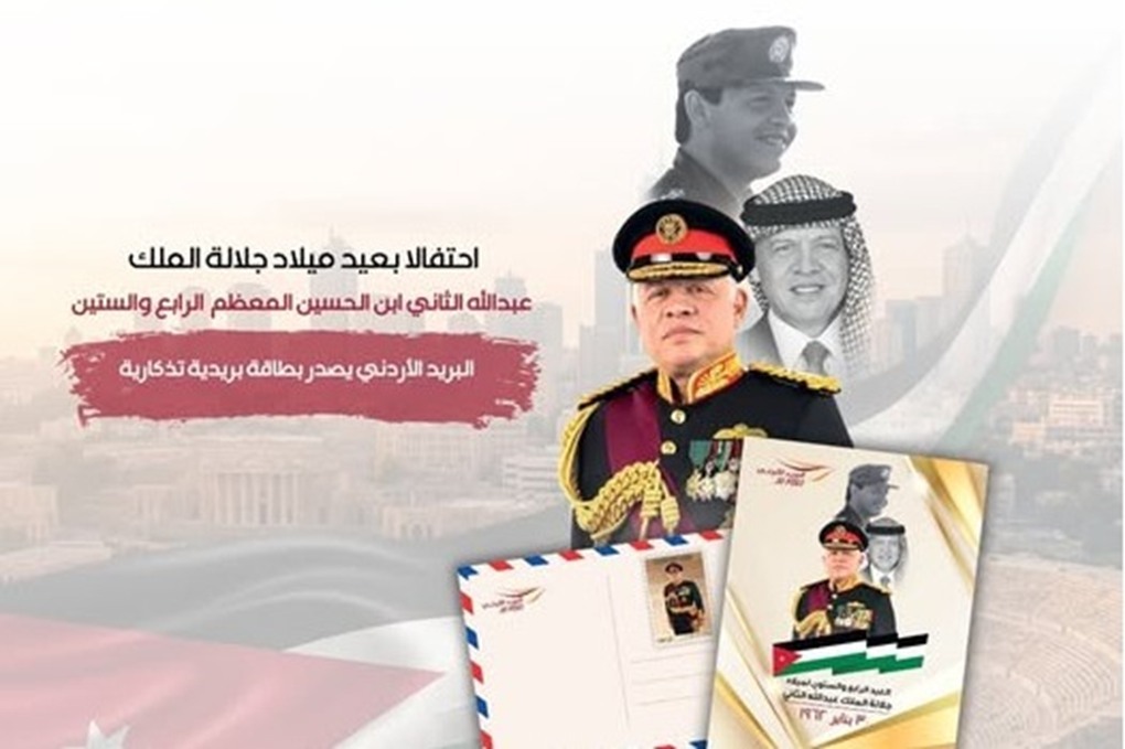 البريد الأردني يصدر بطاقة بريدية تذكارية احتفالا بعيد ميلاد الملك