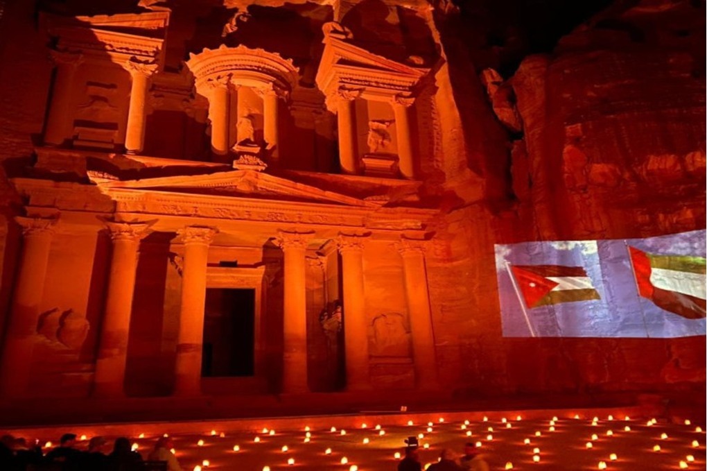 سلطة إقليم البترا تضيء الخزنة بالعلم الإماراتي احتفالا بعيد الاتحاد الـ54